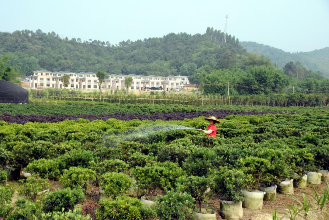 村民在給苗木澆水