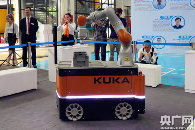 KUKA的最新產(chǎn)品“KMR”,可以全向移動(dòng),達(dá)到正負(fù)1毫米的定位精度,上面有人機(jī)協(xié)作機(jī)器人,相當(dāng)于一個(gè)移動(dòng)的工作站。