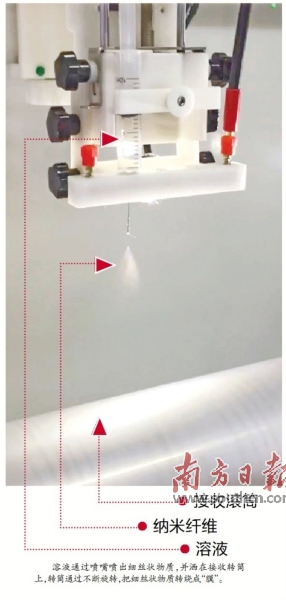 李春斌介紹,拉絲的過程類似于紡織工藝中的“織布”過程,一根根細(xì)絲連成線,最后就可以在一個(gè)平面上“織造”出一張僅有納米至微米厚度的薄膜。