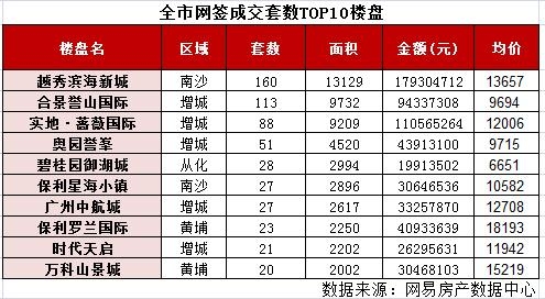不過,合景譽(yù)山國際并非上周網(wǎng)簽量最高的樓盤,排在前面的還有位于南沙的越秀濱海新城,樓盤上周成交160套,也因越秀濱海新城的貢獻(xiàn),南沙上周網(wǎng)簽量為269套,僅次于增城。