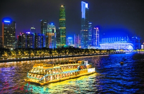 5日晚,“廣州財(cái)富號(hào)”游船載著部分論壇嘉賓,一覽珠江美景。廣報(bào)全媒體記者陳憂子攝