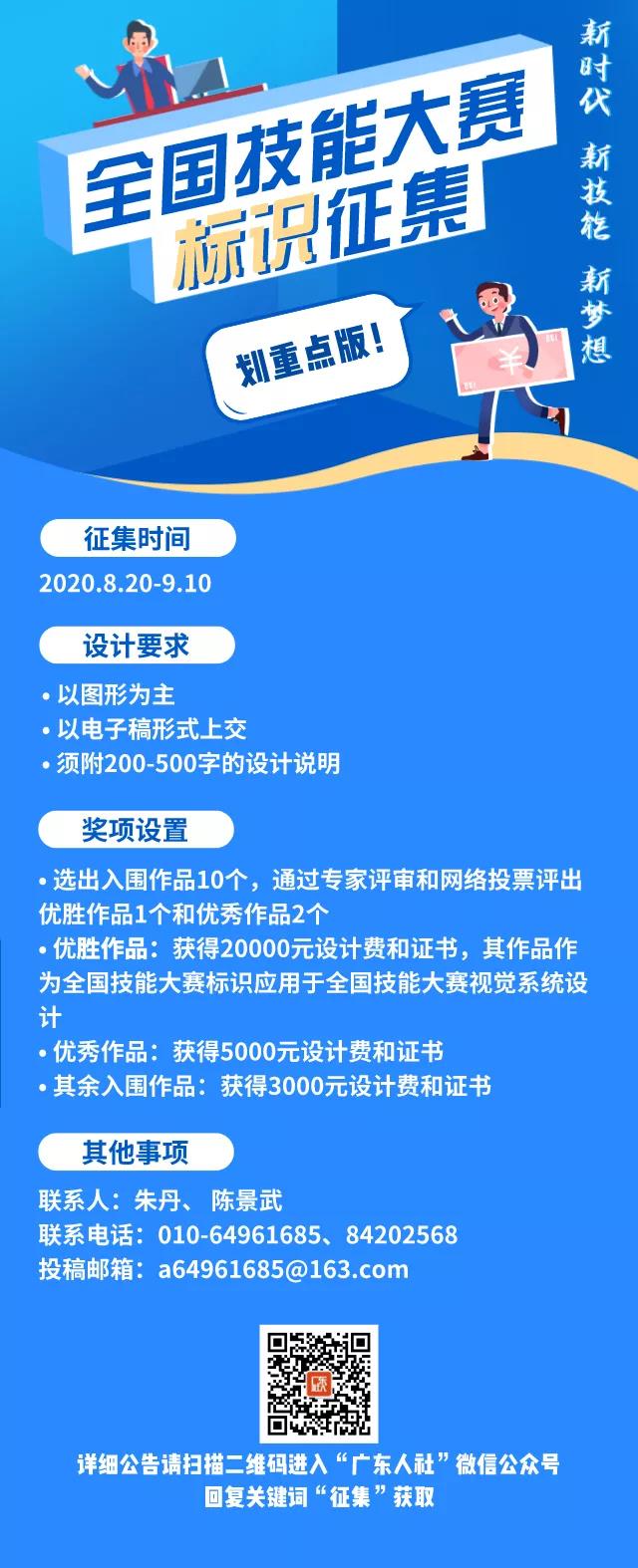 本次活動將從投稿中篩選出10個入圍作品,通過專家評審和網(wǎng)絡(luò)投票從中評出優(yōu)勝作品1個和優(yōu)秀作品2個。優(yōu)勝作品創(chuàng)作者可獲得20000元設(shè)計費和證書,其作品作為全國技能大賽標(biāo)識應(yīng)用于全國技能大賽視覺系統(tǒng)設(shè)計。