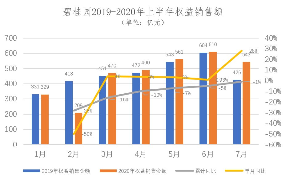 從集團(tuán)單月權(quán)益銷售數(shù)據(jù)來看,除前兩月同比下跌外,三月之后各月均實(shí)現(xiàn)了同比正增長(zhǎng),且呈逐月攀高的積極走勢(shì)。7月份,集團(tuán)權(quán)益合約銷售金額542.8億元強(qiáng)勁增長(zhǎng)27.52%,錄得今年以來最高同比漲幅。2020年1-7月累計(jì)實(shí)現(xiàn)權(quán)益銷售金額達(dá)3212.3億元,穩(wěn)居行業(yè)前列。