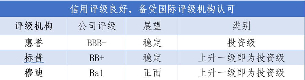 鑒于此,機(jī)構(gòu)和投資者也給予碧桂園較高認(rèn)可。惠譽(yù)給予公司評(píng)級(jí)為BBB-,展望穩(wěn)定,評(píng)定為投資級(jí);標(biāo)普給予公司評(píng)級(jí)為BB+,展望穩(wěn)定;穆迪給予公司評(píng)級(jí)為Ba1,展望正面。碧桂園亦成為民營(yíng)房企中罕有獲得三大機(jī)構(gòu)高評(píng)級(jí)企業(yè)。