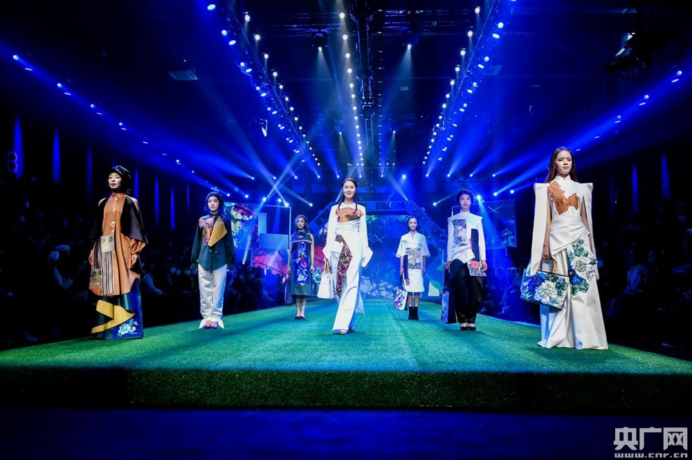 東鄉(xiāng)繡娘在中國國際時裝周T臺走秀。(央廣網(wǎng)發(fā))