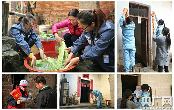 春節(jié)前,15人的志愿服務(wù)隊(duì),再次來(lái)到了水秀村,將紅紅的燈籠掛上村路兩旁,來(lái)到小霞家,幫他們把家里里里外外打掃干凈,把吉祥的鞭炮串兒掛上門(mén)口;他們?cè)诖謇镄麄靼踩秒娭R(shí),慰問(wèn)村里的貧困戶(hù),為他們檢查線路,確保村民們過(guò)一個(gè)溫暖的春節(jié)。