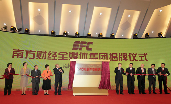 2016年11月7日上午,南方財(cái)經(jīng)全媒體集團(tuán)揭牌儀式在廣州舉行。廣東省委常委、宣傳部部長(zhǎng)慎海雄,省人大常委會(huì)副主任、省總工會(huì)主席黃業(yè)斌,副省長(zhǎng)藍(lán)佛安,省政協(xié)副主席溫蘭子等出席揭牌儀式。