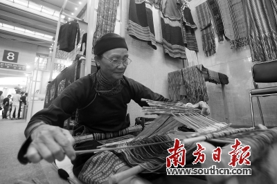 在文博會(huì)8號(hào)館非物質(zhì)文化遺產(chǎn)館,參展商正在展示黎族傳統(tǒng)紡染織繡技藝。南方日?qǐng)?bào)記者 朱洪波 攝