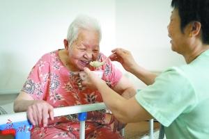 廣州市頤壽養(yǎng)老院的護工在喂享受長護險的98歲黎艷珍婆婆食午飯。