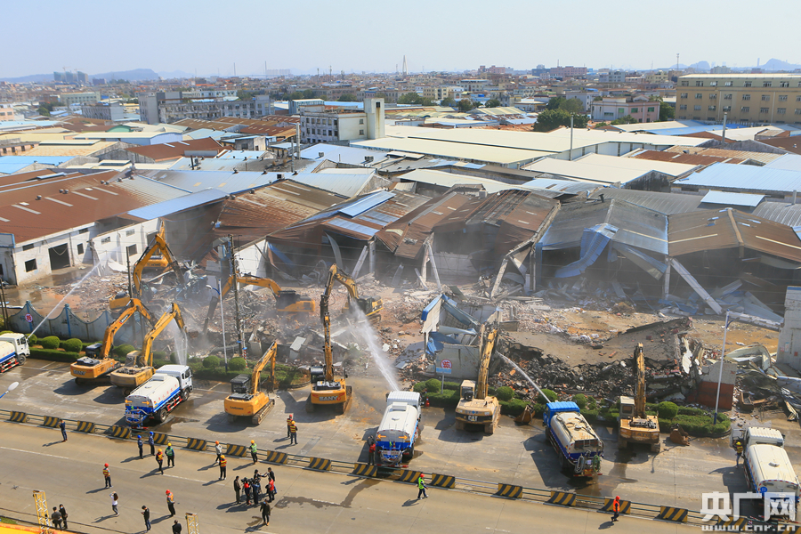 2月18日上午,容桂街道推進(jìn)華口新基圍工業(yè)區(qū)低矮廠房拆除工作。(央廣網(wǎng)發(fā) 通訊員陳炳輝攝)