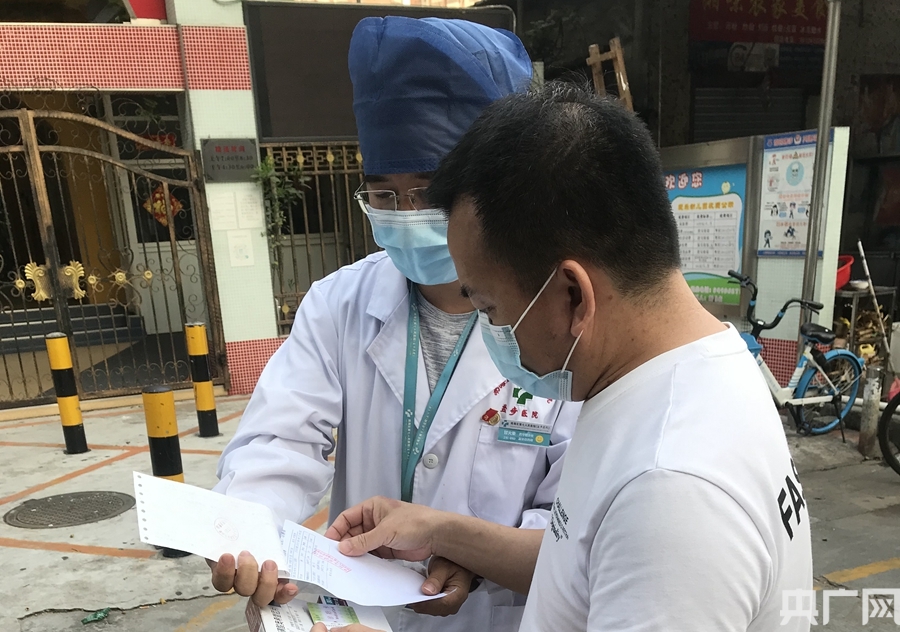 醫(yī)生甘火榮向謝先生囑咐藥物使用注意事項(xiàng)(央廣網(wǎng)發(fā) 通訊員供圖)