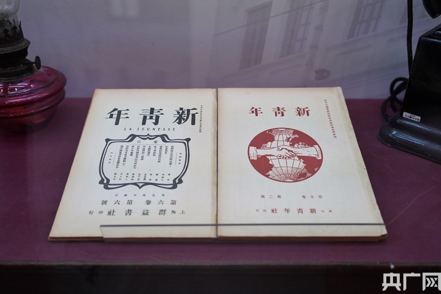 展覽現(xiàn)場展出的《新青年》雜志。(央廣網(wǎng)記者 官文清 攝)