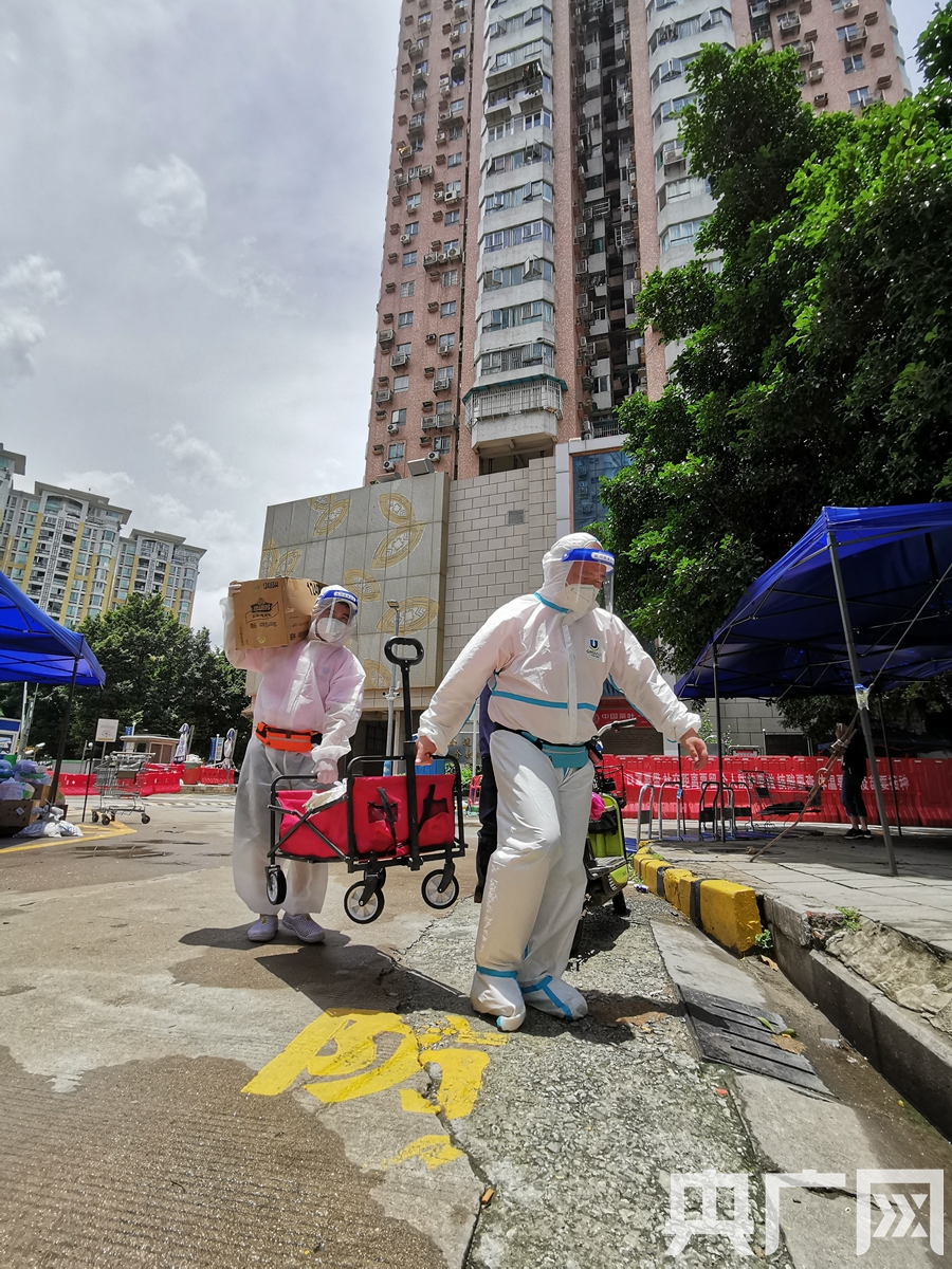 志愿者為封閉封控區(qū)居民配送物資。(央廣網發(fā) 廣州市宣供圖)