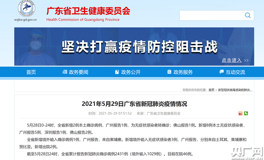 廣東省衛(wèi)健委5月29日7時51分發(fā)布消息(央廣網(wǎng)發(fā))