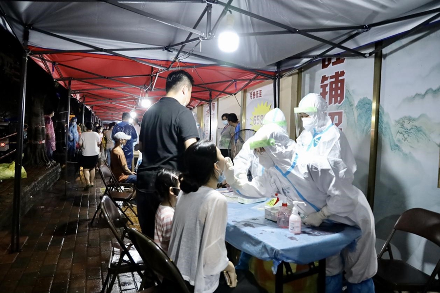 醫(yī)護人員深夜為居民進行核酸檢測。(央廣網(wǎng)發(fā) 通訊員供圖)