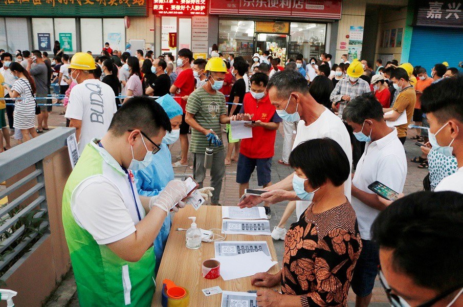 通告一出,花都區(qū)各級黨組織、黨員迅速集結(jié),前往全區(qū)各監(jiān)測點(diǎn)支援采樣工作。工作人員和志愿者堅(jiān)守在崗,仔細(xì)完善檢測流程,做好引導(dǎo)布置,現(xiàn)場秩序井然。