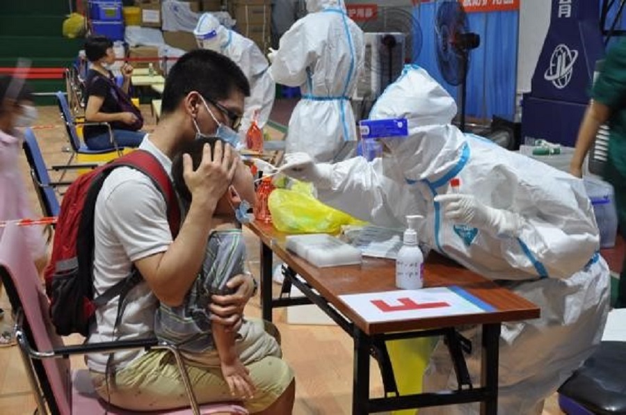 醫(yī)護(hù)人員為兒童采樣。(央廣網(wǎng)發(fā) 通訊員供圖)