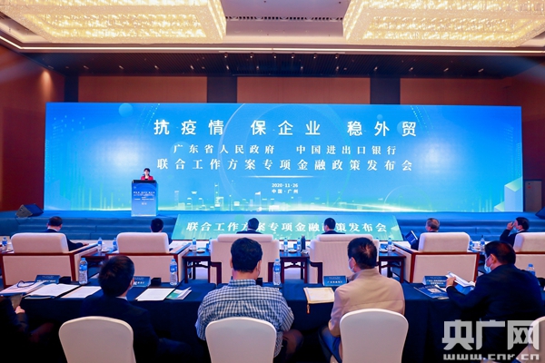 央廣網(wǎng)廣州11月26日消息(記者陳越 通訊員吳曉菲)11月26日,“抗疫情 保企業(yè) 穩(wěn)外貿(mào)”——廣東省人民政府 中國進(jìn)出口銀行聯(lián)合工作方案專項金融政策發(fā)布會(以下簡稱“發(fā)布會”)在廣州舉行。廣東省政府領(lǐng)導(dǎo)、中國進(jìn)出口銀行行長吳富林出席發(fā)布會并致辭。此次會議由廣東省商務(wù)廳、中國進(jìn)出口銀行廣東省分行聯(lián)合主辦,廣東省發(fā)改委、財政廳、工業(yè)和信息化廳、商務(wù)廳、國資委、地方金融監(jiān)管局、人民銀行廣州分行、中國出口信用保險公司廣東分公司、廣東各地市商務(wù)局和廣東80余家重點(diǎn)企業(yè)參加發(fā)布會。