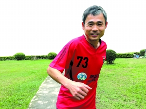 2013年開始,李謹(jǐn)如從臺山來到開平,每天從事與財務(wù)方面相關(guān)的工作,坐在電腦前輸入各種密密麻麻的表格!懊刻旃ぷ骱笱岜惩矗蟊圻患上了關(guān)節(jié)炎。”李謹(jǐn)如說自己性格內(nèi)向,平時沒什么愛好,工作又比較單調(diào),時時感覺很寂寞,偶然的機(jī)會他接觸了一名“跑友”。跑友建議他嘗試長跑,就不用常去看病了。這對頸椎突出、腰背經(jīng)常疼痛的李謹(jǐn)如來說具有莫大的吸引力。他覺得,跑步是排解寂寞的最好方法,現(xiàn)在心里記掛著跑步,生活也充實(shí)起來。有時候,李謹(jǐn)如甚至覺得他對跑步有種莫名的依賴。跑步三年來,他身體的酸痛基本消失,他還笑稱“連工作效率都提高了”。