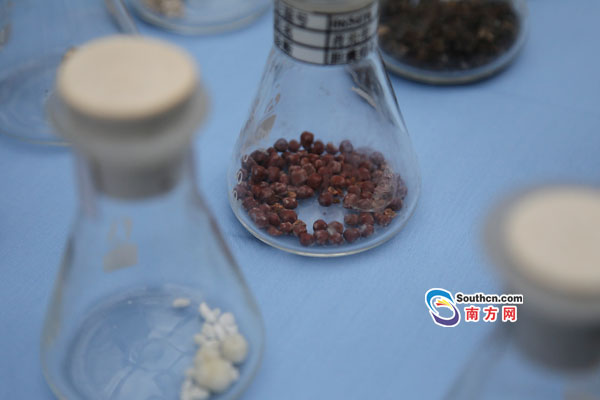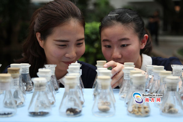 南方網(wǎng)訊 大的像小石子一樣潔白,小的則像高粱一樣紅潤光澤,還有像芝麻粉一樣的散碎結(jié)石……近日,在東莞市南城醫(yī)院舉行的學(xué)術(shù)培訓(xùn)班上,南城醫(yī)院副院長王三貴多年來的“珍藏”——2300多份結(jié)石標(biāo)本擺在會議現(xiàn)場,因?yàn)槲孱伭⑿螤罡鳟,同事將其稱為“五谷雜糧”,也令參觀者嘆為觀止。