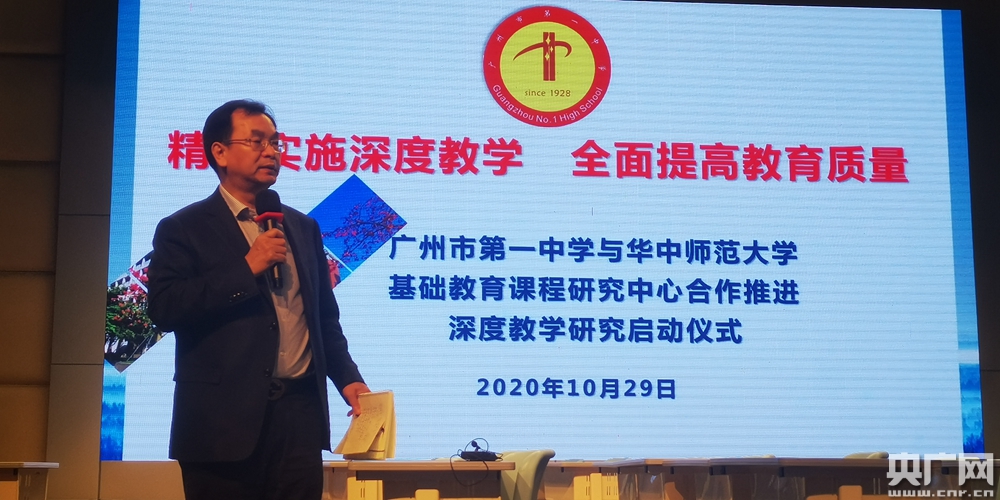 央廣網(wǎng)廣州10月29日消息(記者梁衛(wèi)浩)今天上午,廣州市第一中學(xué)與華中師范大學(xué)基礎(chǔ)教育課程研究中心宣布,將在廣州一中全面實(shí)施“深度教學(xué)”理念,以全面提高教學(xué)質(zhì)量。在我國(guó)首次提出“深度教學(xué)”理念的華中師范大學(xué)郭元祥教授表示,期待通過三年的深度合作,把廣州一中的高考高優(yōu)率提高一倍。