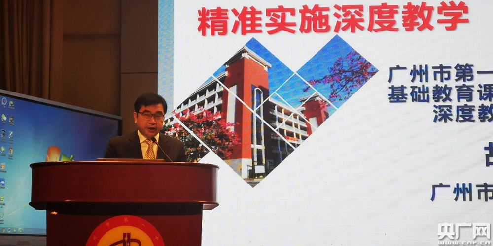 廣州一中胡革新校長(zhǎng)做主旨演講。(央廣網(wǎng)發(fā))