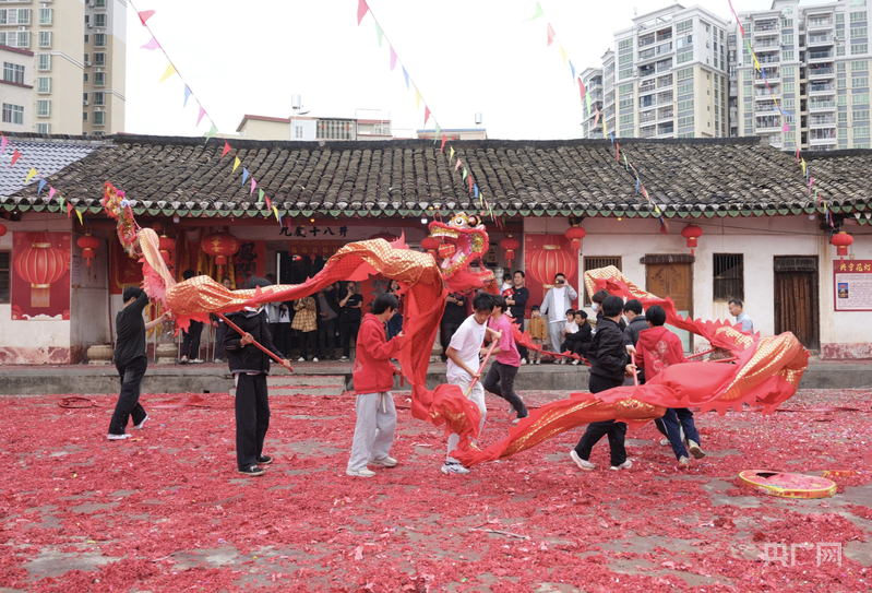 “九廳十八井”古祠堂上燈儀式表演(央廣網(wǎng)發(fā) 吳雁 攝)