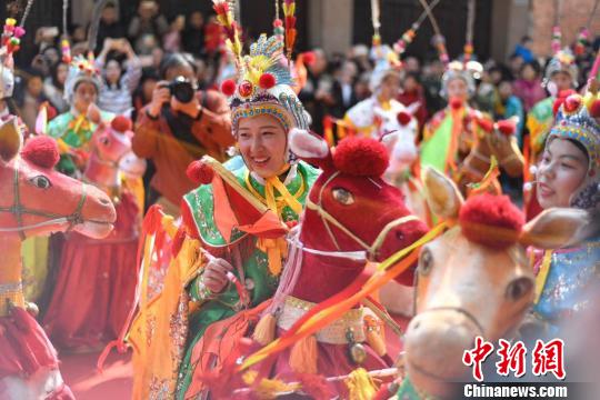 據(jù)中國新聞網(wǎng)報(bào)道,一群年約二十的姑娘手執(zhí)彩旗,頭戴桂冠,身著錦袍,腳踏布馬,靜立在潮州市牌坊街的石板路上。倏而音樂聲起,姑娘們聞聲而動(dòng),或搖旗、或揚(yáng)鞭,在旋轉(zhuǎn)、跳躍之間,一支充滿民俗氣息的獨(dú)特舞蹈就此上演。