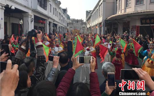 潮州市民圍觀布馬舞表演 沈釗 攝
