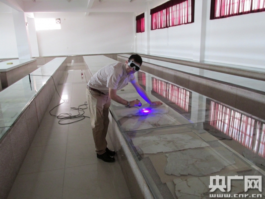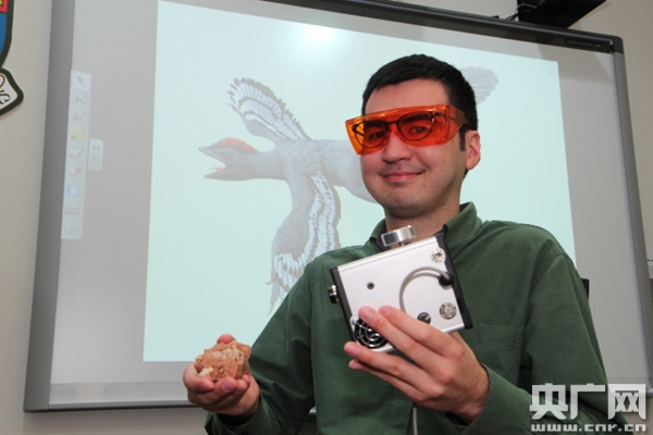 今次是首次有古生物學(xué)家,根據(jù)恐龍的骨肉軟組織準(zhǔn)確重塑其輪廓外貌。這項具突破性的研究結(jié)果,于英國倫敦時間2月28日(星期二)于學(xué)術(shù)期刊《自然通訊》(Nature Communications)發(fā)表。激光誘導(dǎo)熒光技術(shù)(Laser-stimulated fluorescence,LSF)是一種革命性的新技術(shù),利用高強度激光令在骨頭周圍、肉眼看不到的軟組織“在黑暗中發(fā)出熒光”。這技術(shù)由合作伙伴Foundation for Scientific Advancement的 Tom Kaye研發(fā),利用紫色激光在黑房中掃描化石。激光會“刺激”一些保留在巖石基質(zhì)的皮膚原子令它們發(fā)光,以揭示恐龍真正的外形。研究文章的主作者兼古生物學(xué)家文嘉棋博士指出:“過去二十多年來,我們一直對中國東北部那些奇異的帶羽毛恐龍感到驚嘆。然而,我們從來沒有想過軟組織會這樣廣范地被保存下來!蔽牟┦亢脱芯炕锇闄z視了超過二百件近鳥龍的標(biāo)本(一種帶羽毛,類似鳥類的恐龍),挑選出其中保存了特別組織的十幾件,定量重建的結(jié)果,顯示了該恐龍身體各部分的輪廓,包括翅膀、腿部、甚至腿部上保存完好的鱗片,為研究鳥類的起源提供了新信息。文博士說:“由于連細微的部分也能夠很好地發(fā)光,我們可以觀察微細至皮膚的紋理也看得清楚。”