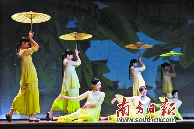 熱鬧、歡騰的舞蹈《獅舞嶺南》拉開(kāi)了演出的序幕;歌曲《萬(wàn)水千山總是情》《母親》勾起了僑胞濃濃的思鄉(xiāng)之情;舞蹈《桃色滿園》《雨打芭蕉》(見(jiàn)右圖)展現(xiàn)了溫婉、靈動(dòng)的中國(guó)美;川劇變臉表演出神入化;雜技肩上芭蕾《蝶戀》將浪漫與驚險(xiǎn)融為一體……精彩的演出不時(shí)引發(fā)掌聲和喝彩。