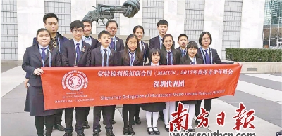 參與蒙特梭利模擬聯(lián)合國2017年世界青少年峰會(huì)的深圳代表團(tuán)。受訪者供圖
