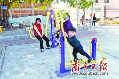 古村落的現(xiàn)代文化廣場(chǎng)是村民休閑的好地方。