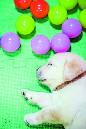 中國導盲犬南方示范基地中剛滿月的小拉布拉多犬,它也將成長為導盲預備犬