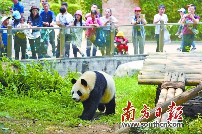 吸引游客圍觀的“海歸”大熊貓“秋浜”