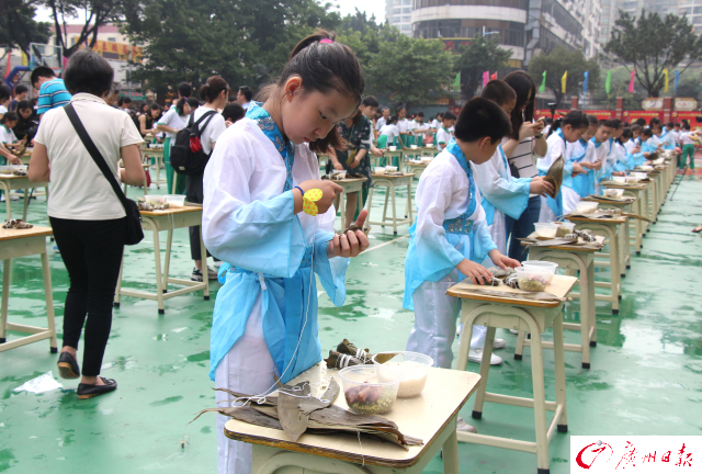 據(jù)廣州日報報道,合興苑小學千人包粽迎端午 2017年5月23日上午,合興苑小學舉辦了一場別開生面的千人包棕迎端午活動,邀請家長與學生在動手實踐中感受民俗文化,在親子互動中體驗過節(jié)的樂趣,場面極為壯觀。