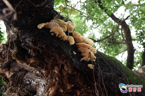 在該村后山金波嶺有一棵樹干十分粗壯的沉香樹,樹底下有不銹鋼圍欄圍著。為何要把樹圍起來?據村民介紹,這棵沉香樹長得粗壯,而且有多年歷史,前些年被一些不法分子盯上,偷砍樹采沉香,幸好村民發(fā)現,后來大家商量決定為該樹設立護欄,F在走近一看,沉香樹干還有被刀斧砍傷的地方。