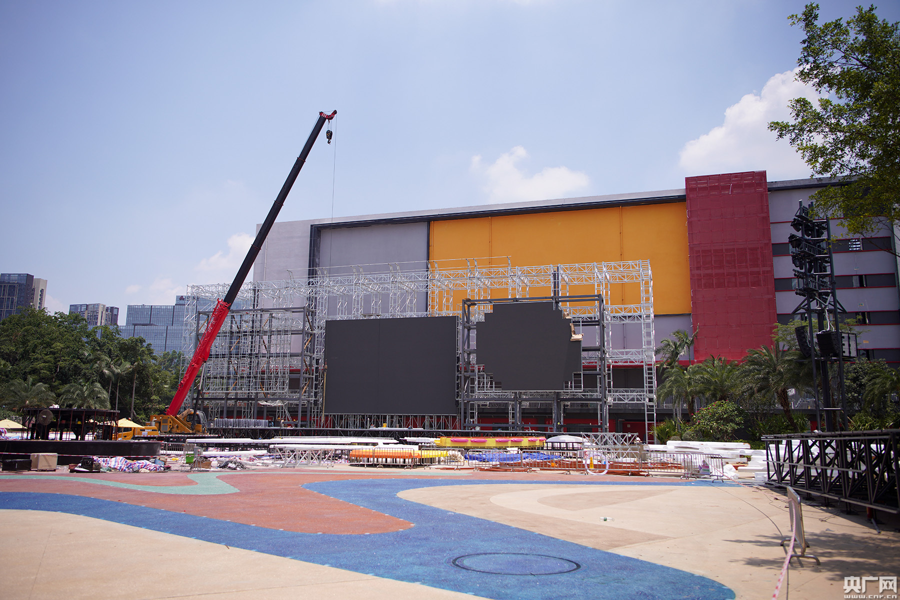 進(jìn)入建造收尾階段的超級演義廣場。(央廣網(wǎng)記者 官文清 攝)