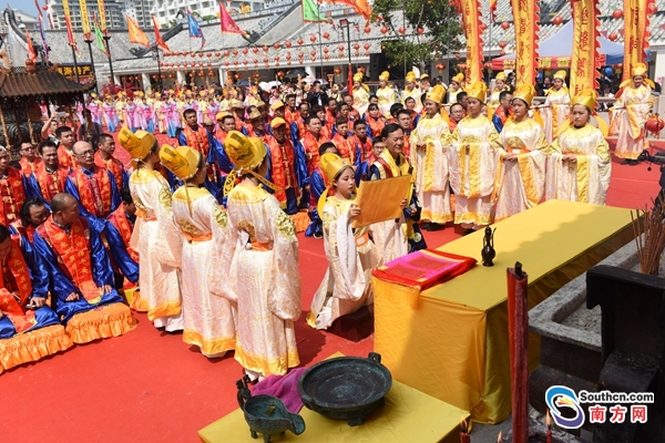媽祖文化旅游節(jié)開幕式在巽寮天后宮舉行,天后宮正殿內(nèi)供奉的媽祖神像有5米多高,是省內(nèi)最高的媽祖坐像,端莊祥瑞、栩栩傳神。擂鼓鳴炮、迎神上香奠帛、誦讀祝文、跪拜叩首……現(xiàn)場舉行了莊重的媽祖祭典儀式,頌揚(yáng)媽祖立德、行善、大愛精神,進(jìn)一步傳承、保護(hù)、發(fā)展媽祖文化。