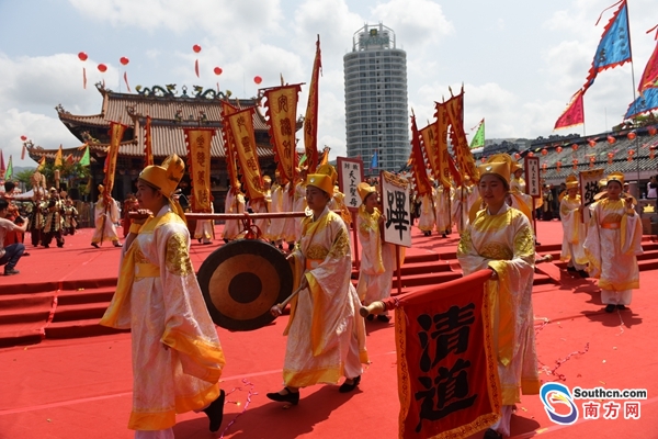 南方網(wǎng)消息:莊重的媽祖祭典儀式、古裝表演、漁家民俗表演、英歌舞、舞龍舞獅……精彩紛呈的民俗文化盛宴在惠州惠東縣巽寮濱海旅游度假區(qū)上演。7日,為期三天的巽寮第六屆媽祖文化旅游節(jié)拉開帷幕,吸引了眾多媽祖信眾、游客和當(dāng)?shù)鼐用袂皝韰⑴c。