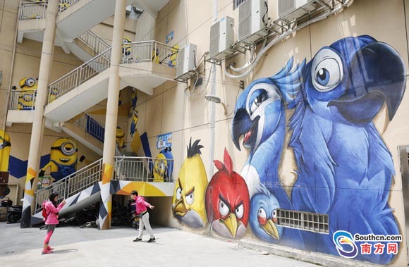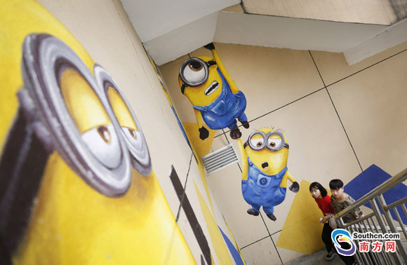 據(jù)南方網(wǎng)報道,近10米高憨態(tài)可掬的大臉貓、視覺逼真的3D隧道、一群動作各異的小黃人沿著樓梯出現(xiàn)在各個角落……一幕幕奇異的景象出現(xiàn)在了中山市石岐區(qū)華佗新村富榮花園樓下的墻體上。這些形態(tài)逼真,色彩艷麗的墻繪作品,讓這個老小區(qū)增添了時尚文化氣息,吸引了不少路過的年輕人駐足拍照留念。據(jù)悉,華佗新村富榮花園樓下的商鋪已經(jīng)空置多年,一家企業(yè)以文化創(chuàng)意為主題進行項目改造,為了吸引更多市民的注意,專門邀請了專業(yè)團隊花了近半個月時間打造了這一些墻繪作品。