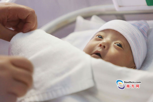 19日上午,在市婦幼保健醫(yī)院新生兒科病房內,糾正年齡2個月的“早早”在“臨時媽媽”熊小云的懷里非常安靜,雖然臉部還有少許黃疸,但瞪著圓圓的眼睛顯得非常有精氣神,兩眼也不停地四處張望,對外界充滿了好奇。