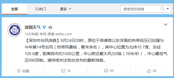 深圳天氣微博截圖
