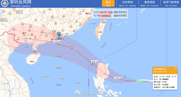 據(jù)深圳天氣微博消息,臺風(fēng)“天鴿”剛走,又有一個新的熱帶低壓在菲律賓以東洋面生成,該熱帶低壓24日17時距離深圳1586公里。