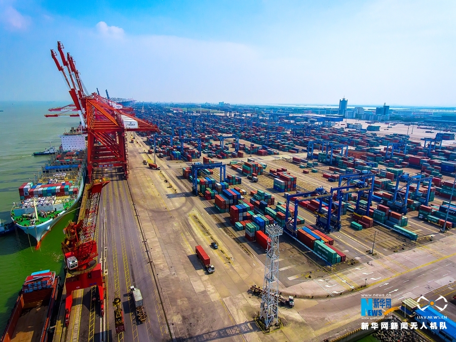 繁忙的集裝箱碼頭、便捷快速的自助通關(guān)閘口