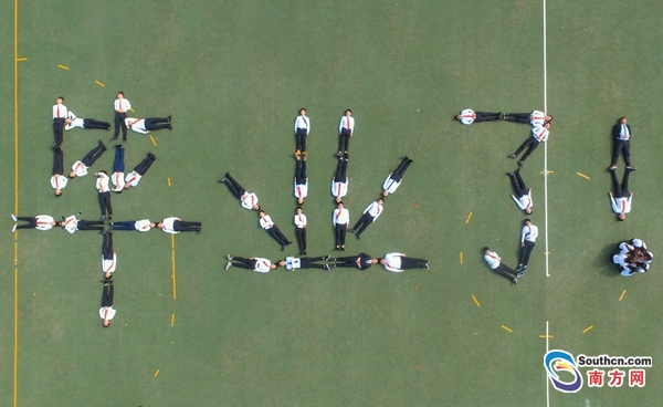 集體大合照結(jié)束后,學(xué)生們分散到校園各個(gè)角落拍照。在經(jīng)世廣場(chǎng),校方提供了巨型“學(xué)生證”等展板供學(xué)生合影。在足球場(chǎng),一些學(xué)生平躺在操場(chǎng)擺出“畢業(yè)了”的造型,換一個(gè)視角定格即將逝去的大學(xué)青春時(shí)光。
