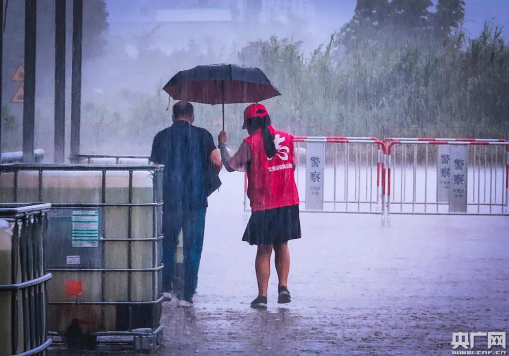 央廣網(wǎng)中山9月5日消息(記者張勝強 通訊員曾毅峰)暴雨中,一位梳著馬尾辮的志愿者姑娘撐傘扶送一位老人。雨傘微微向老人身上傾斜,姑娘的衣服、鞋子、帽子早已被雨水打濕。