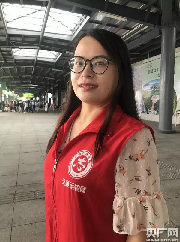 5日早上,根據(jù)市民提供的線索,這名熱心的志愿者在中山市汽車總站被找到。此時的她依然在進行著志愿服務(wù),這個名為張藝的姑娘,是中山市交通運輸局組織的一名交通便民志愿者。