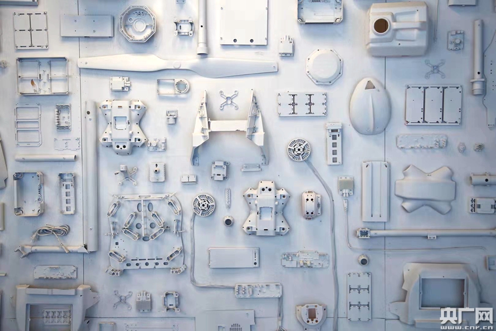 農(nóng)業(yè)無人機(jī)零件展示墻。(央廣網(wǎng)發(fā))