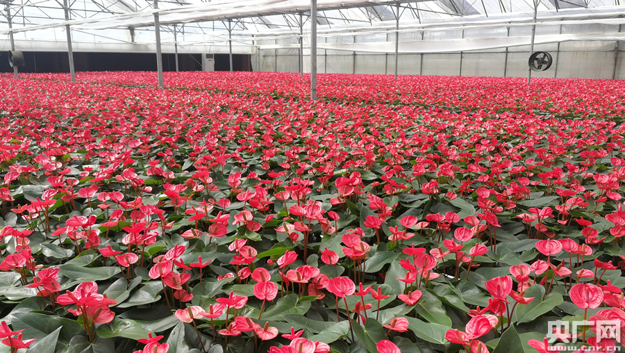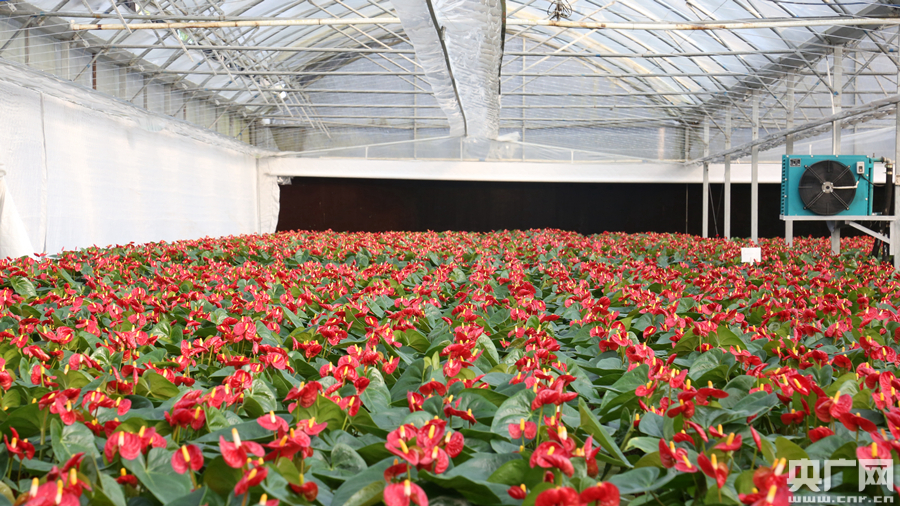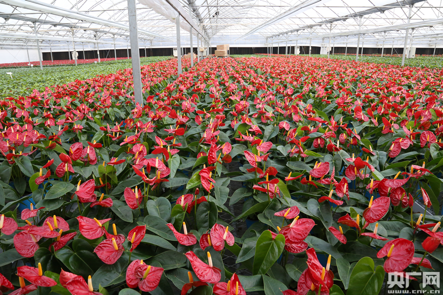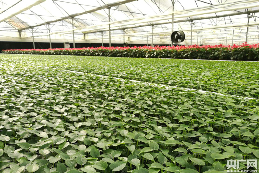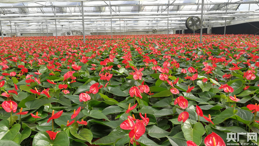 紅掌系列新品種盆花標(biāo)準(zhǔn)化生產(chǎn)示范展示(央廣網(wǎng)發(fā) 穗農(nóng)宣供圖)